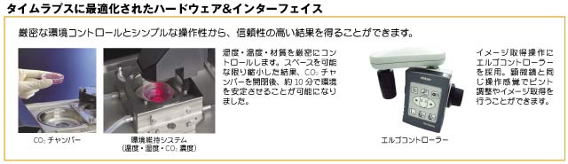 徹底した環境制御と温度変化や振動によるフォーカスドリフトを解消したことで、生細胞の長期タイムラプス観察を可能にしました。パソコンからのフル電動制御により、設定条件にしたがったタイムラプス画像が自動的に取得できます。チャネル、Z軸スタック、倍率などの変換や位相差と蛍光観察の切換えなどを含めた多次元タイムラプス観察が簡単に行えます。