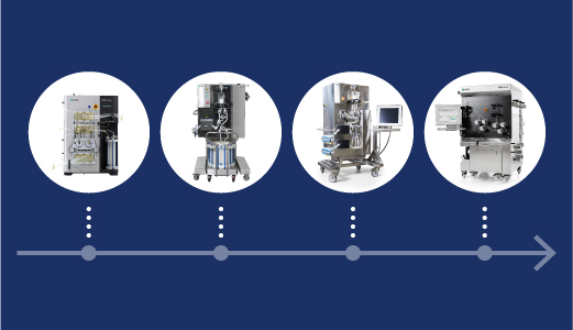 互換性のあるシングルユースクロマトグラフィーシステムのプラットフォームのため、スムーズなスケールアップをサポートします。ReadyToProcess™クロマトグラフィーカラムやタンジェンシャルフローフィルトレーションシステムと組み合わせて、シングルユース戦略による精製を実現できます。