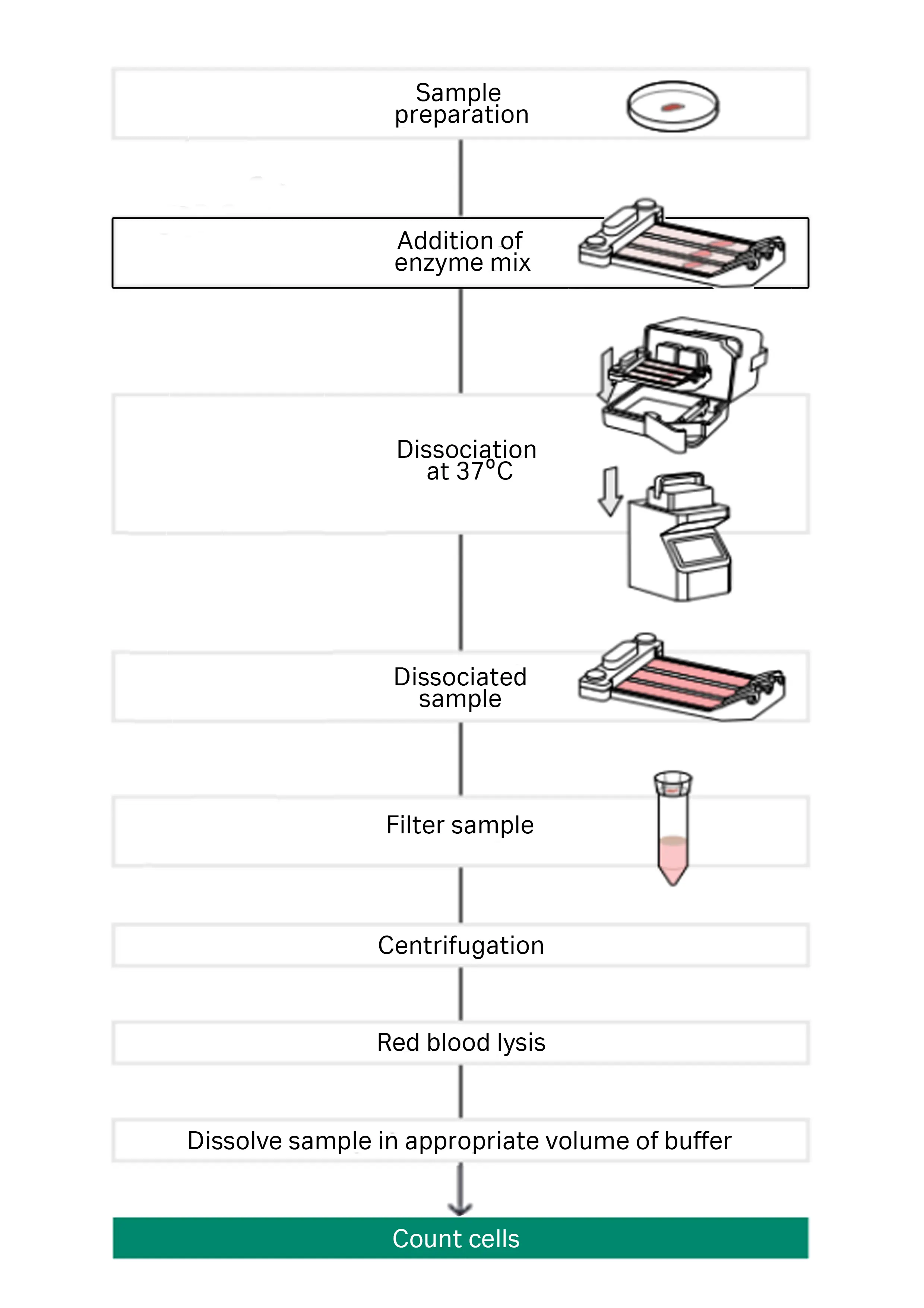Instrument and setup | Dissociation time | Temperature | Speed | Cell count (/mL) | Viability (%) |